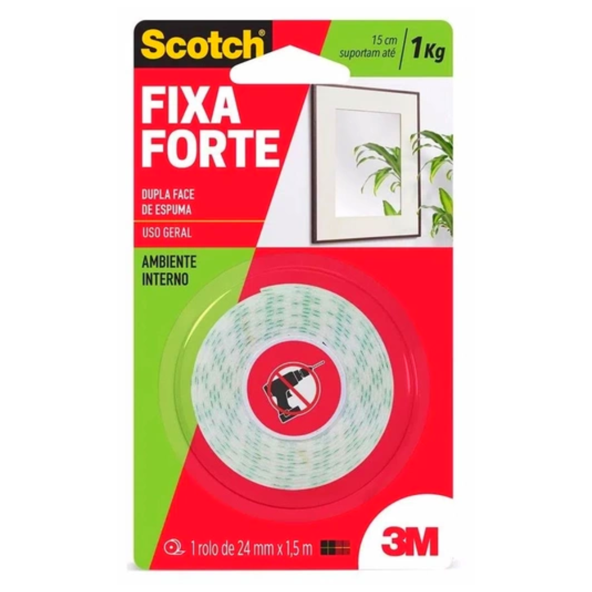 Fixa Forte Espuma Ambiente Interno 24mm X 1,5 Metros 3M Suporta até 1Kg 15cm