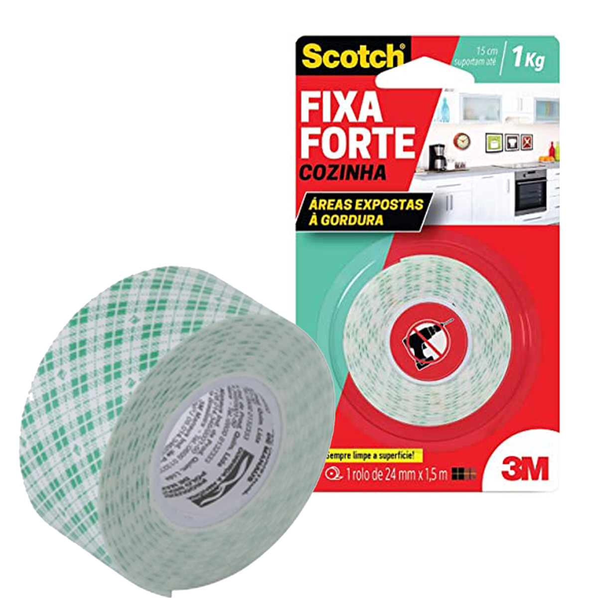 Fixa Forte Espuma Cozinha 24mm X 1,5 Metros 3M suporta até 1kg 15cm
