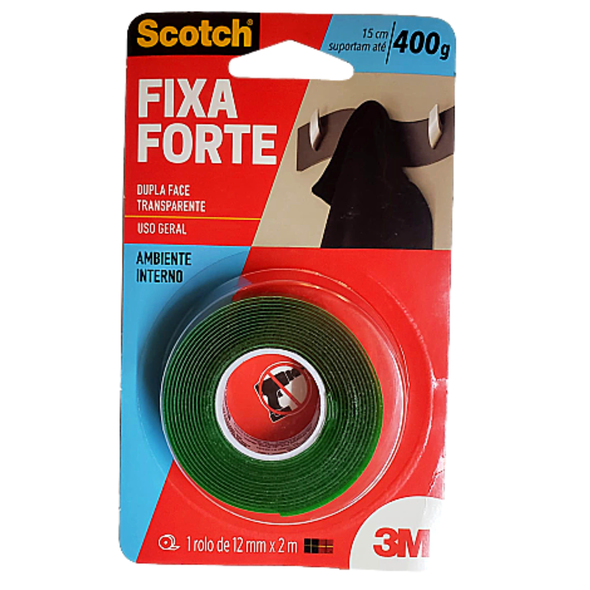 Fixa Forte Transparente 12mm X 2 Mts 3M Suporta até 400g 15cm