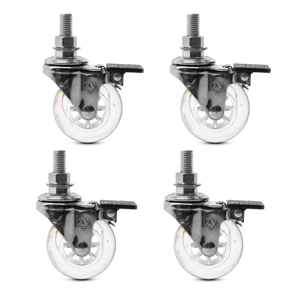 Kit 4 Unidades Rodizio Giratorio Silicone Gel 50mm Parafuso 3/8 Com Freio