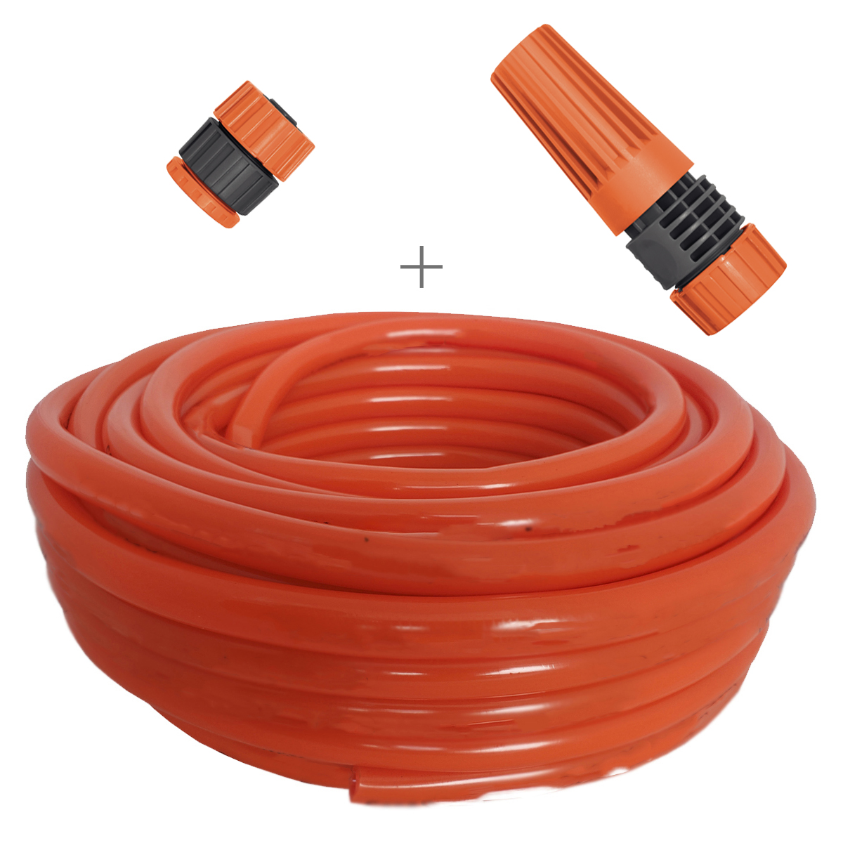 Kit Mangueira Siliconada Laranja 50m Esguicho e Engate rosqueavel Tramontina