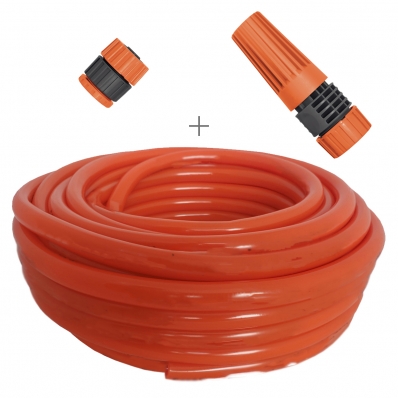 Kit Mangueira Siliconada Preta 50m Esguicho e Engate rosqueavel Tramontina