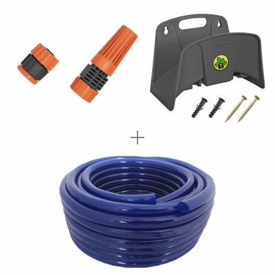 Kit Mangueira Siliconada Preta 50m Esguicho, Engate rosqueavel e Suporte Tramontina